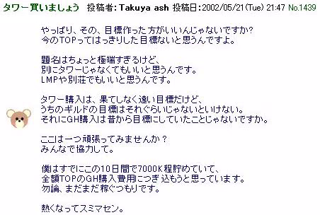 ギルメン全員で力を合わせてタワーを買おうよ。そして引っ越そう。
